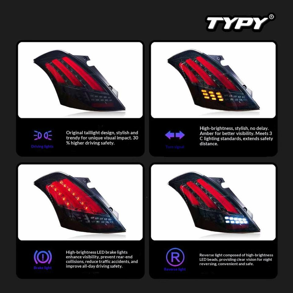 Nouvel ensemble de feux arrière TYPY pour Suzuki Swift 2005-2016, modèle B OLIVER, compatible 12V, feux arrière LED, clignotants