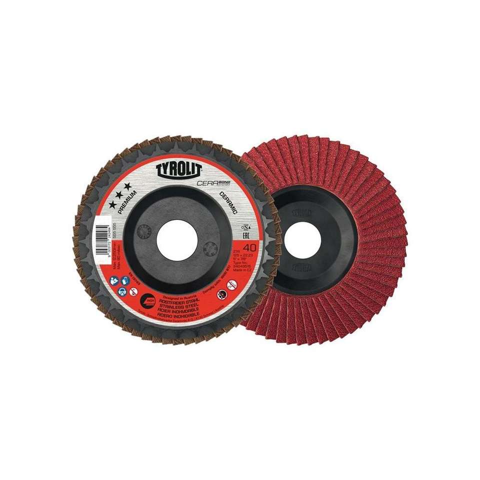 TYROLIT Disque à éventail CERABOND dm 125 mm granulation 80 plat en acier inoxydable grain céramique Bohrung 22,23mm