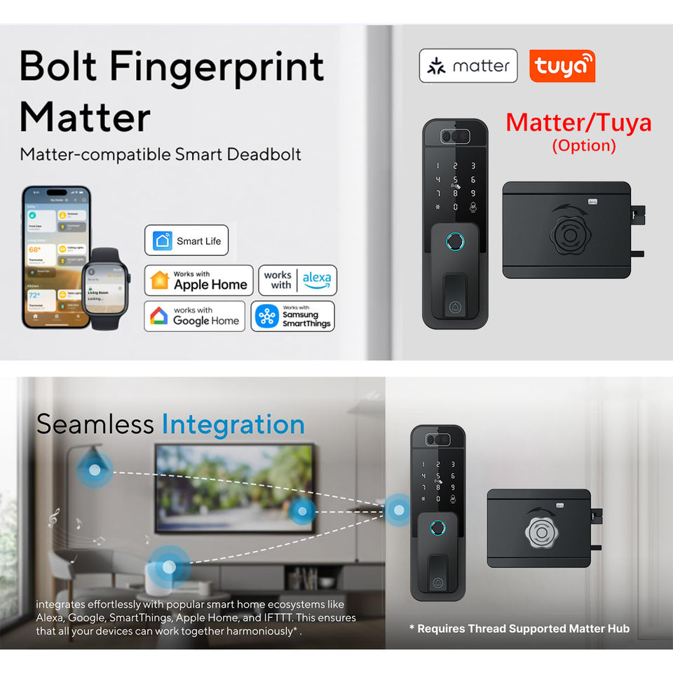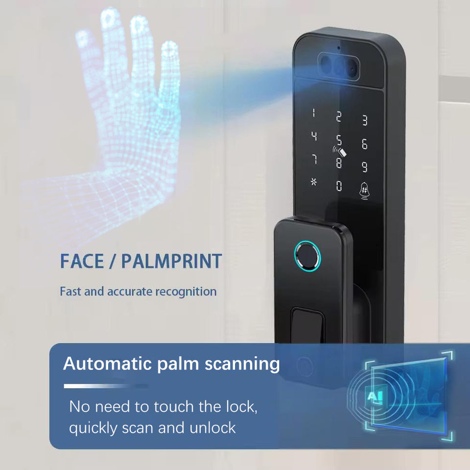 TYSH Matter Tuya Smart Rim Lock avec déverrouillage du visage Caméra Palm Vein Biométrique pour Porte de Porte Électronique Numérique WiFi Serrures de Sécurité