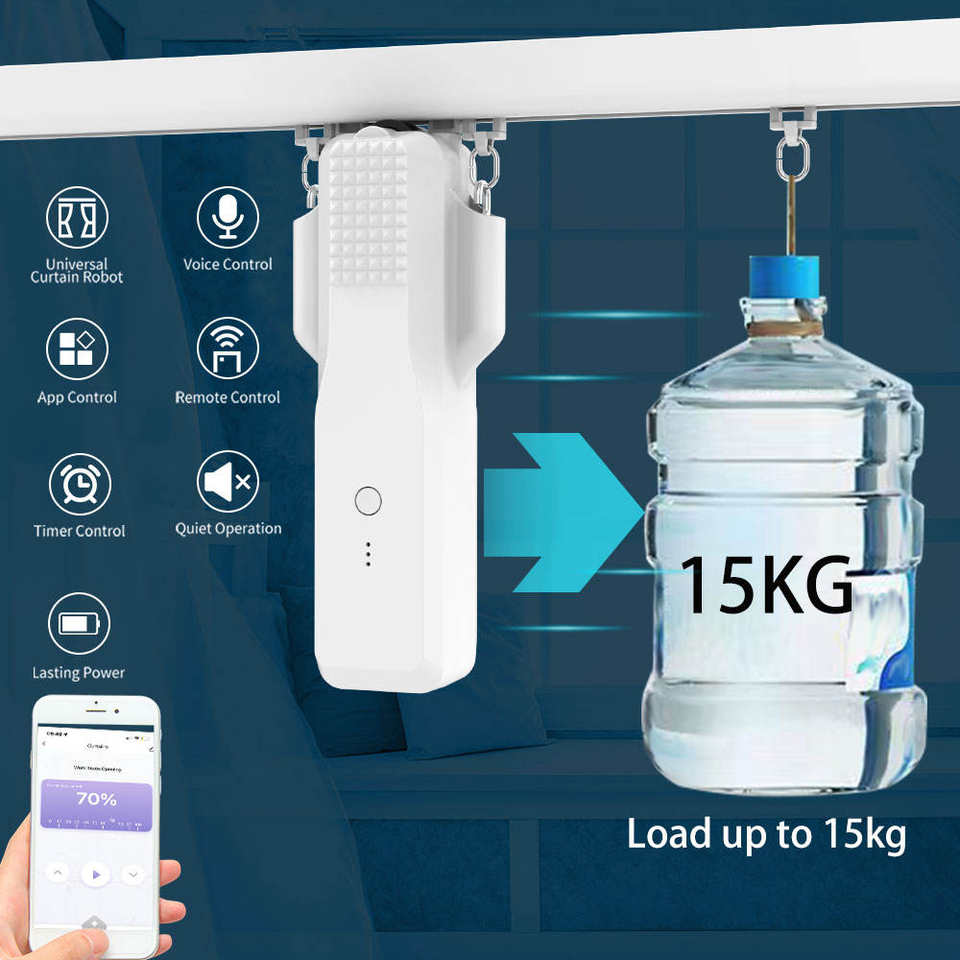 TYSH-Tuya Batterie Ultra-silencieuse, Contrôle Vocal par Application Wifi, Rideaux de Rêve, Rideau de Lit à Moteur Robot Solaire Intelligent pour Chambre à Coucher