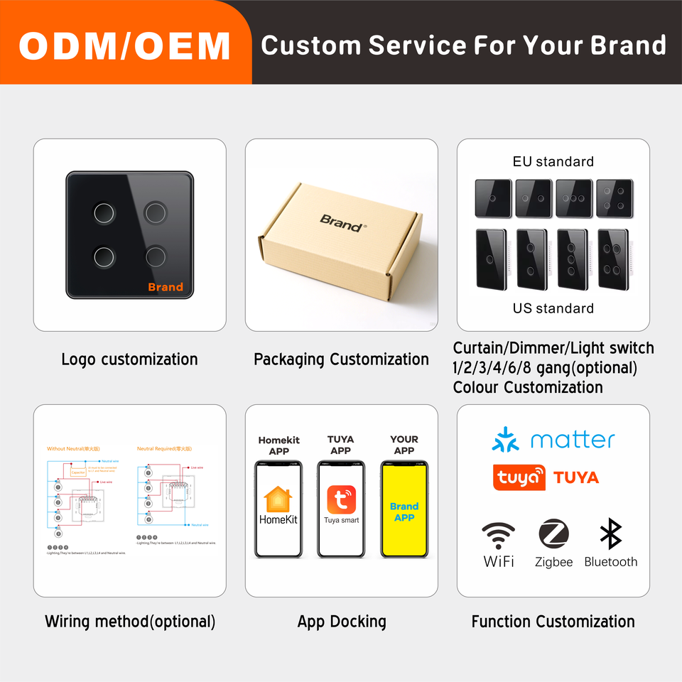 Interrupteur tactile multifonctionnel TYSH Tuya en acrylique 4-en-1 avec variateur de lumière, rideau et scène, compatible Zigbee/Wi-Fi
