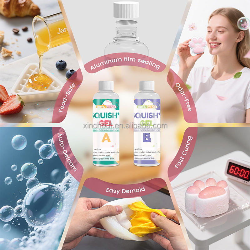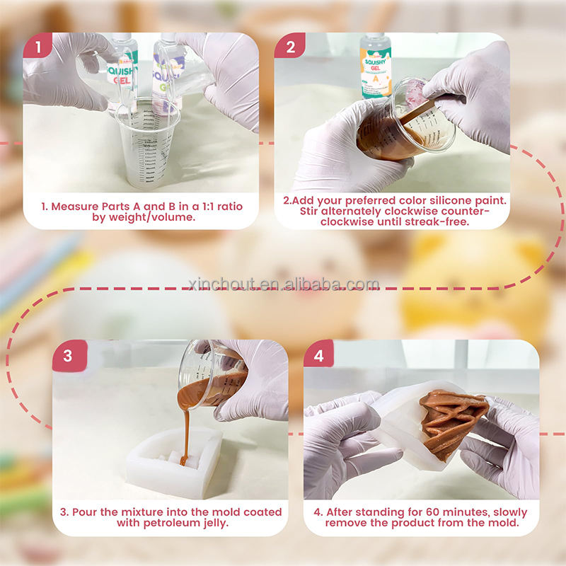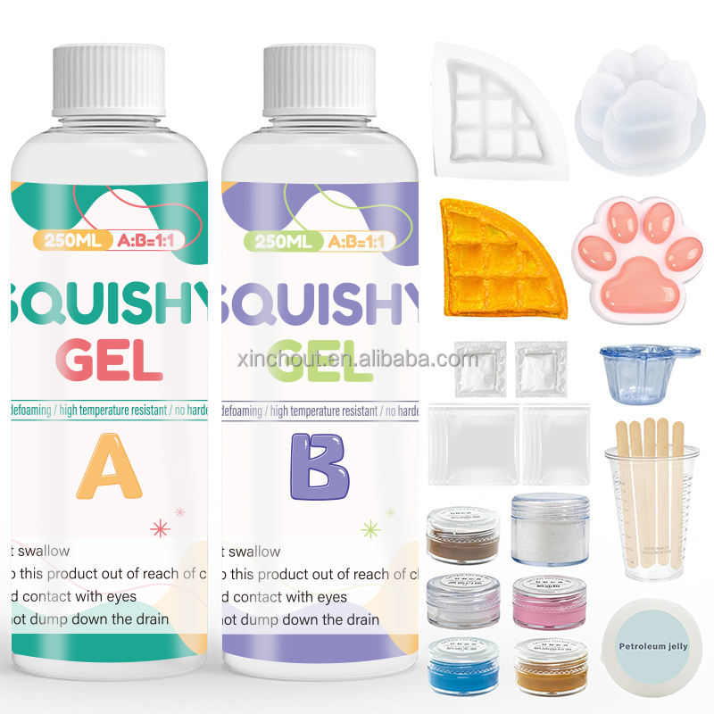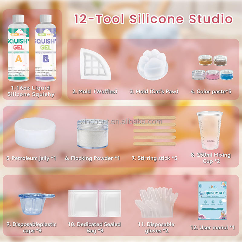 Taba Squishy Kit Moule en silicone liquide pour fabricant de squishy avec gaufres guidées Moule à patte de chat Gelée de pétrole et poudre de flocage