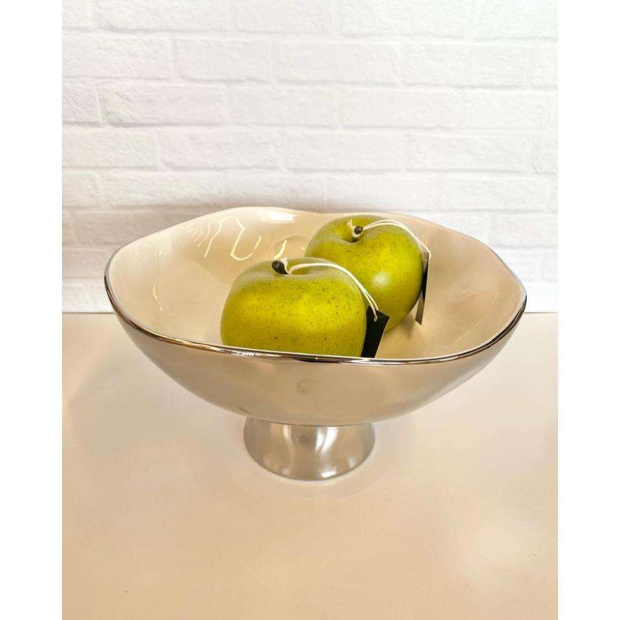 Centre de table décoratif : Plat rond en émail blanc sur piétement en aluminium, bol à fruits décoratif, bols de service alimentaire, prix abordable