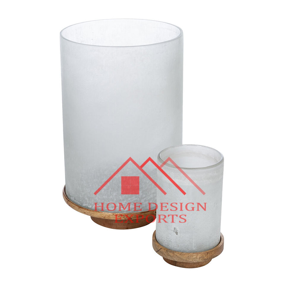 Table Centerpieces & Home Decor Wooden Base Candle Holder Trending Home Decor Best Seller Glass Frosted Candle Holder