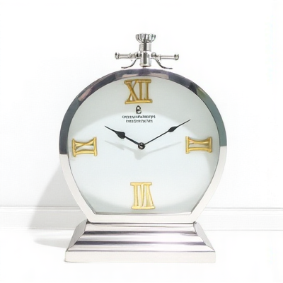 Horloge de table en acier inoxydable, chiffres romains, simple, élégante, analogique à quartz, sans tic-tac, de qualité supérieure