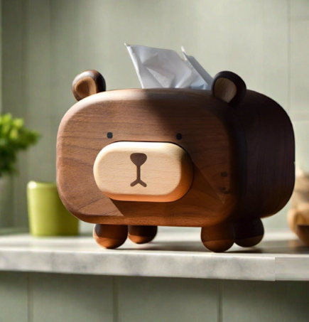 Boîte à mouchoirs en bois en forme de chat pour décoration de table, support de papier fait main, utilisation hôtelière et en restauration