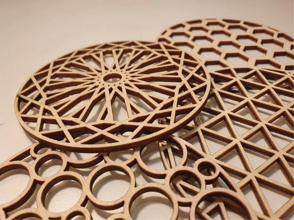 Décoration de table, sous-verres découpés au laser Sous-verres en bois Ensemble de 4 sous-verres pour boissons Cadeaux de pendaison de crémaillère