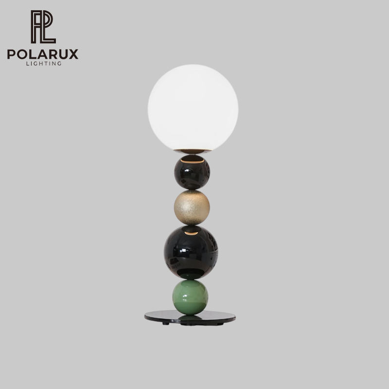 Lampe de table nordique moderne créative pour chambre à coucher, hôtel, en métal et verre, LED, haute qualité, nouvelle, unique, stable, boules rondes empilables