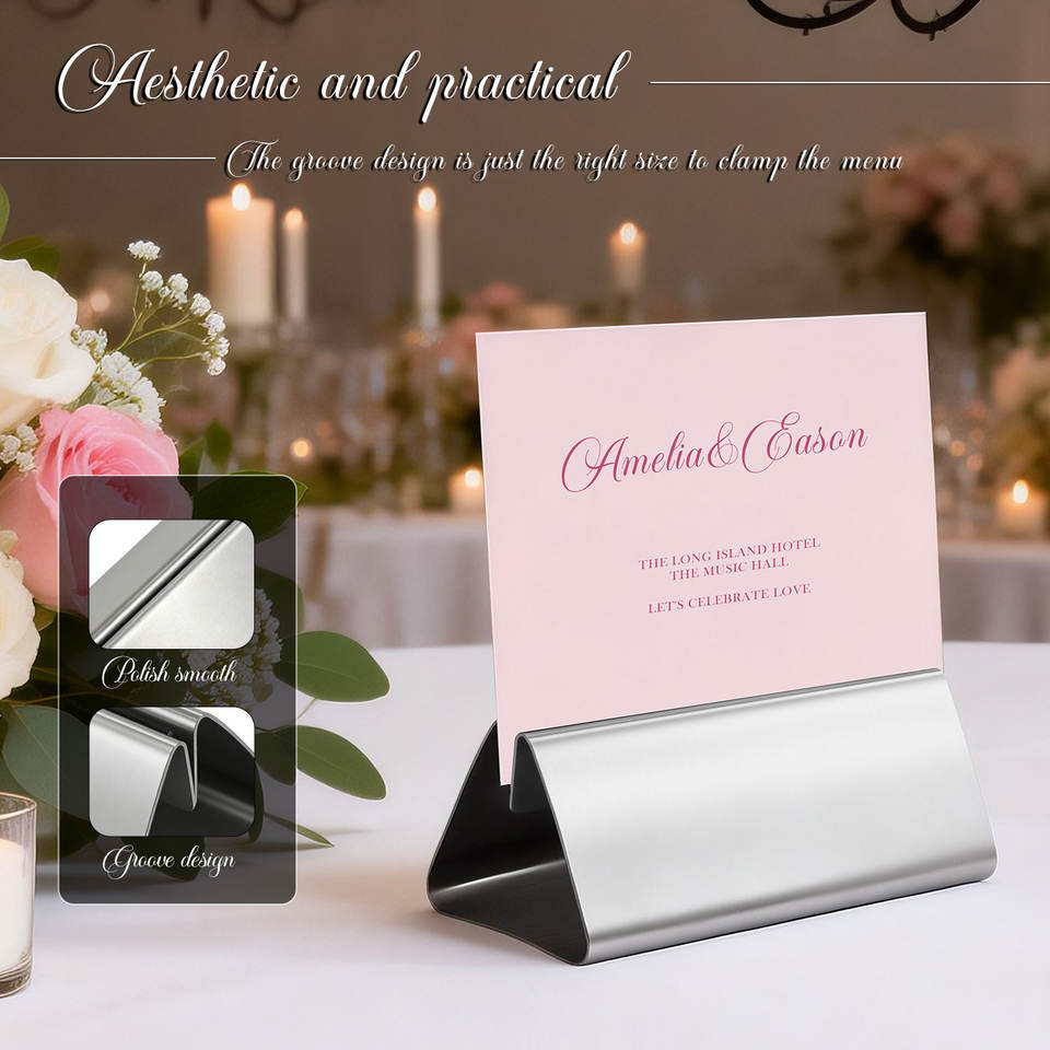 Porte-numéros de table en acier inoxydable pour mariage, bureau, étiquettes, photos, menus, banquets, anniversaires
