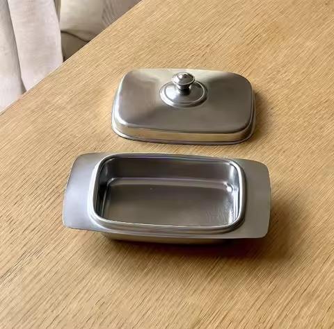 Beurrier en métal avec couvercle