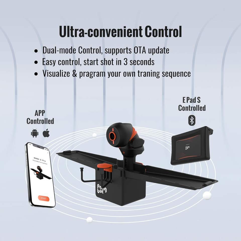 Robot de tennis de table avec filet, machine de ping-pong automatique, contrôle E-PadAPP, 396 trajectoires de balles pré-enregistrées, exercices programmables