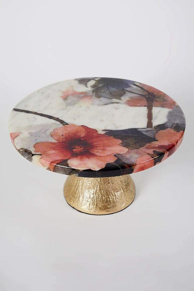 Présentoir à gâteau en métal de style standard avec dessus en marbre pour le prix de gros