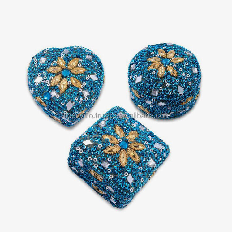 Boîte à bijoux décorative de table, boîte à bibelots Jaipuri, boîte de rangement cosmétique pour femmes, ensemble de décoration pour la maison, lot de 3 pièces