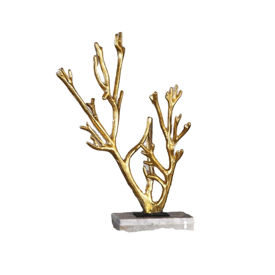 Table Sculpture Décorative En Métal Fabriqué À La Main Moderne Arbre Conception Haute Qualité Or Couleur Aluminium Sculpture