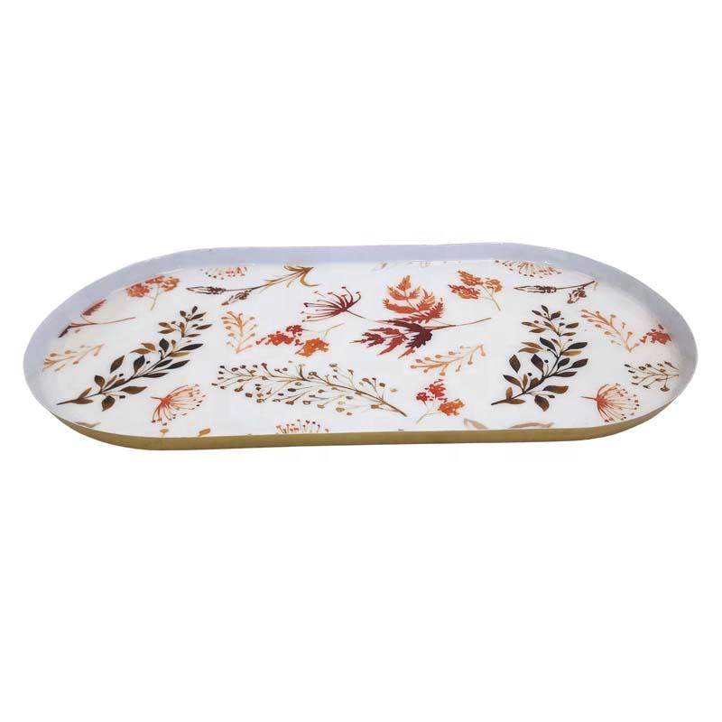 Table Top Ustensiles De Cuisine Fer Métal Émail Plateau Ovale Couleur Or Grand Plat Pour Servir Et Décoratif Servir À La Main