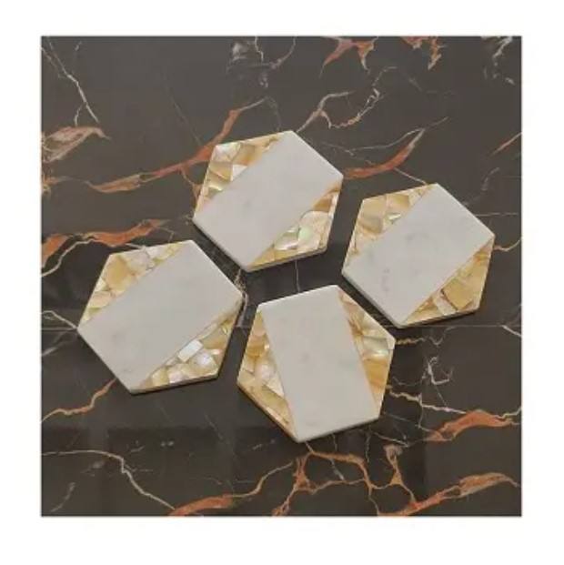 Sous-verres de thé en bois ronds élégants avec tapis de table incrusté d'os/tampon dernière conception prix de gros