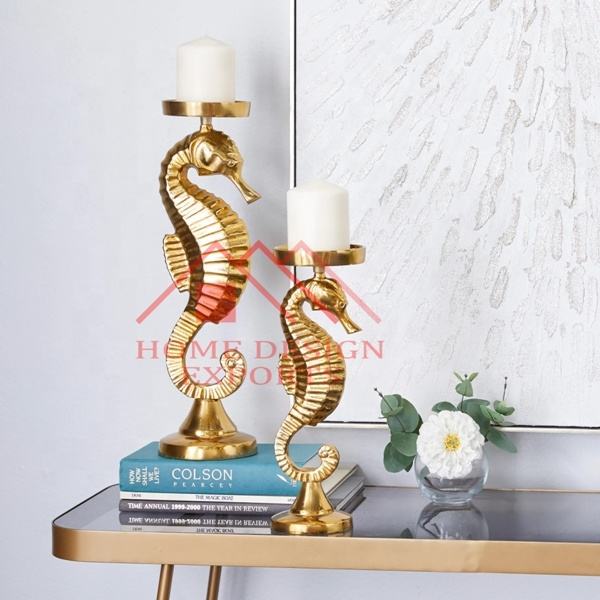 Table Top Pièce Maîtresse De Mariage Nouvelle Conception En Aluminium Bougeoir En Aluminium En Aluminium Cheval De Mer Sculpture Bougeoir