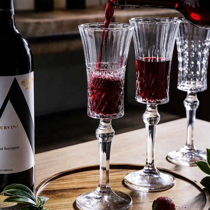 Verres à vin rouge géants en cristal embossé pour décoration de table de mariage, verres à vin vintage en cristal, gobelet vintage
