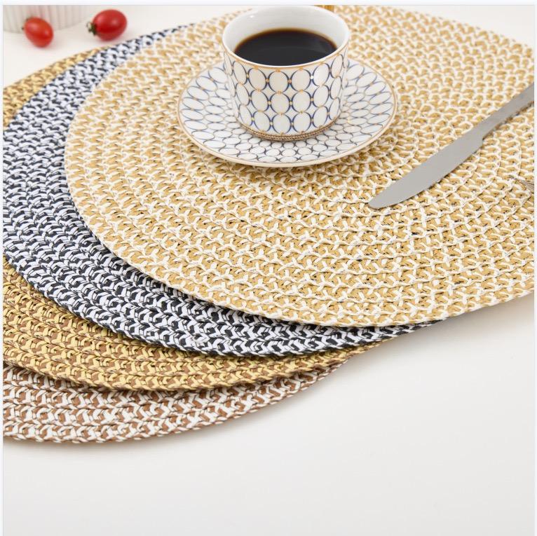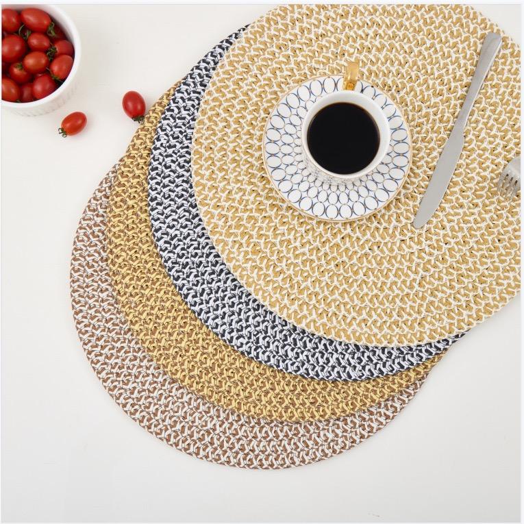 Napperon rond en papier tressé en toile de jute Tabletex pour tables à manger Tapis de table en papier naturel résistant à la chaleur de 15 pouces