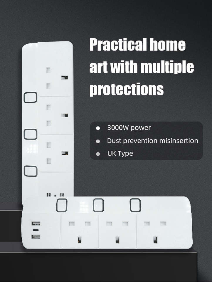 Multiprise de table 3 prises UK à charge rapide avec protection contre les surcharges, sécurité, nouvelle arrivée, USB PLUS