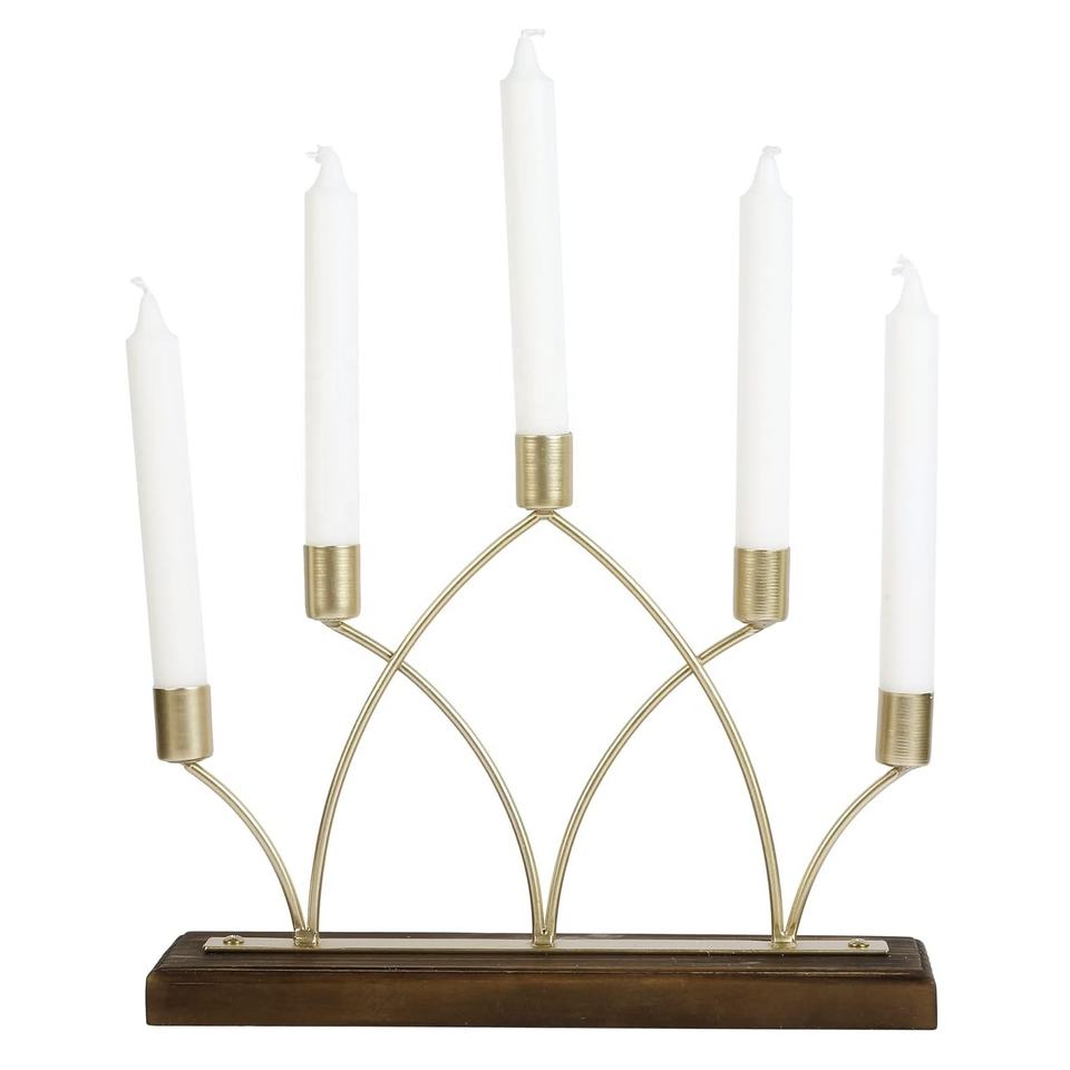 Support de chandeliers décoratif de table avec base en bois Design raisonnable Bougeoir à cinq bras de couleur dorée