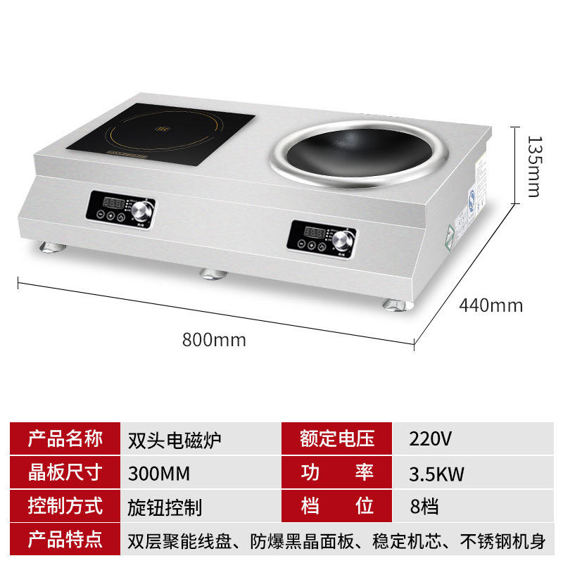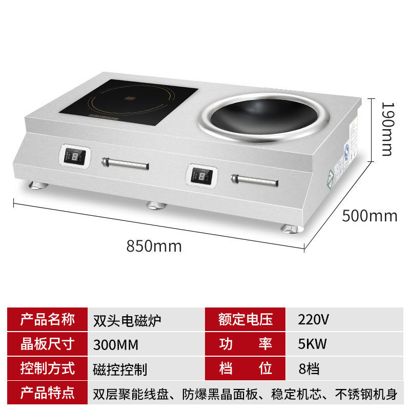 Cuisinière à induction commerciale à double brûleur de table, plate et concave, haute puissance pour restaurant, hôtel, cantine