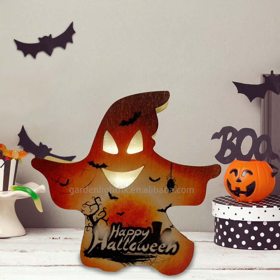 Nom du produit:Table Halloween Décor En Bois Fantôme LED Lumière