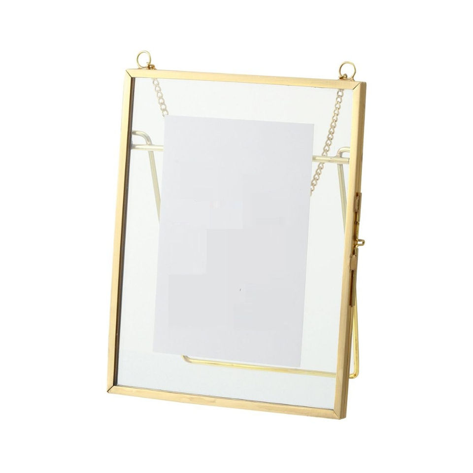 Porte-photo de table créatif en métal doré, cadre photo flottant transparent à double verre pour décoration moderne de la maison, cadeau
