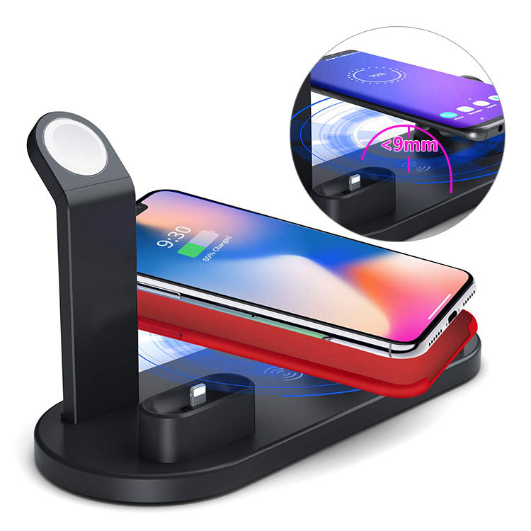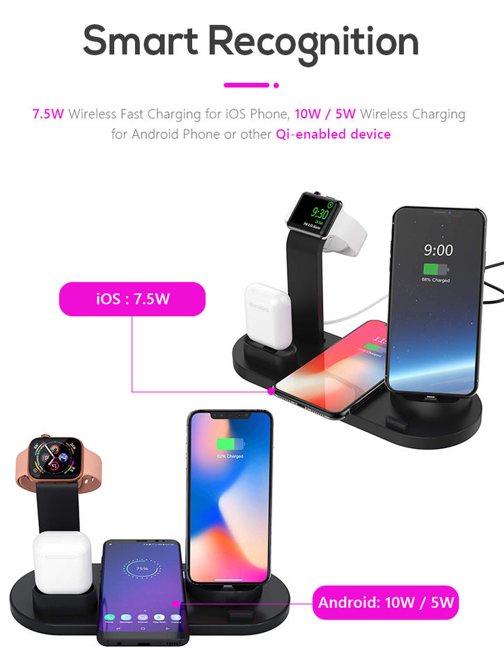 Table QI 15W 4 6 en 1 support de charge sans fil multifonction station d'accueil chargeur à induction pour iPhone Android Samsung