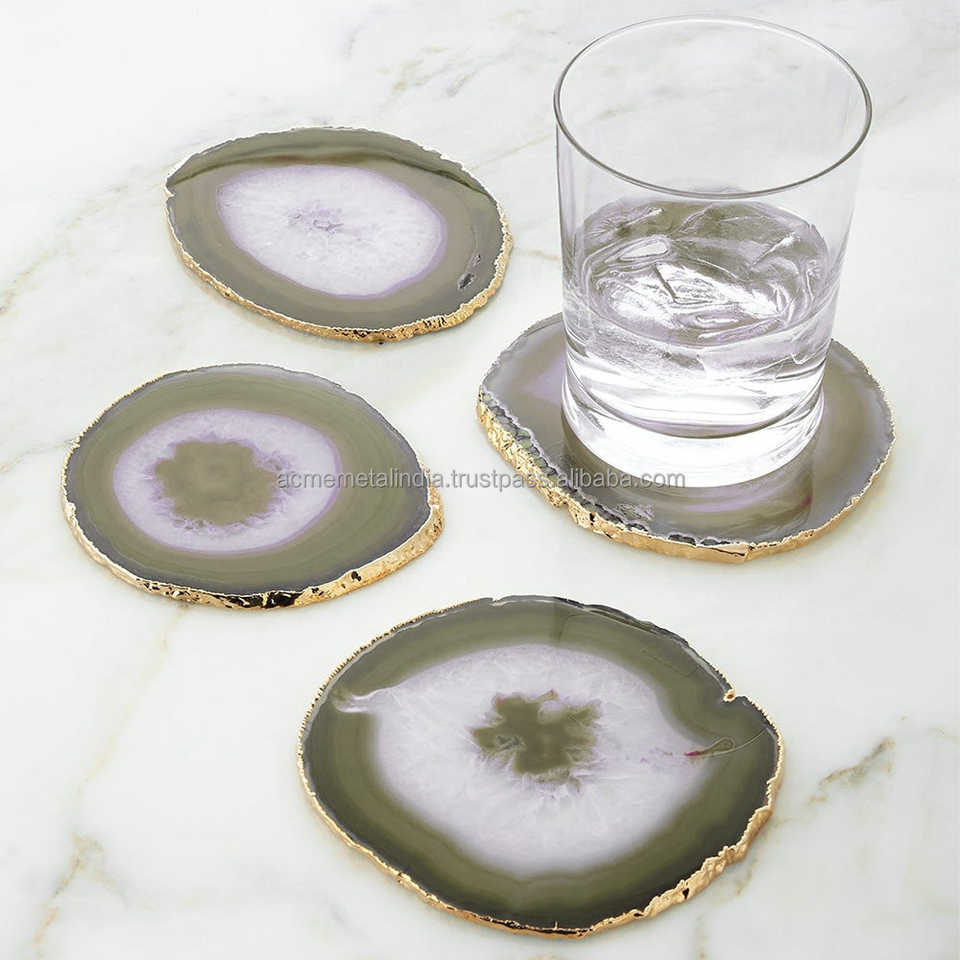 Sous-verres en marbre blanc de table bordures de couleur or ensemble 4 pour thé café verre Table à manger décoration de cuisine pour Restaurant