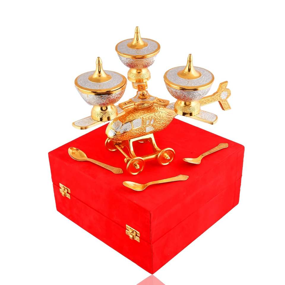 Vaisselle en laiton et en aluminium hélicoptère chariot ensemble 4 bol chariot de service pour noix et doux disponible au prix le moins cher