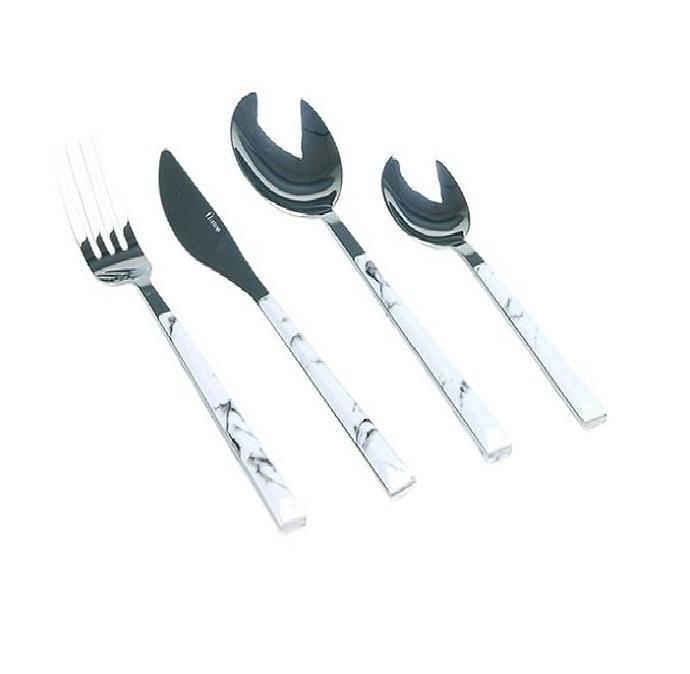 Vaisselle en vrac ensemble de couverts en acier inoxydable doré couverts à facettes en lucite clair couverts avec ensemble de couverts en marbre doré