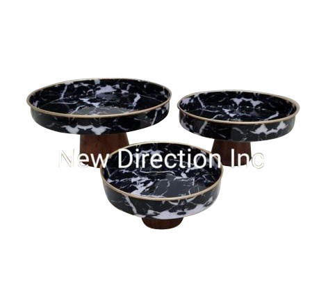 Vaisselle Décoration Nouveau Style Doux Serveur Stand Top Tendance Émail Brillant Finition Ensemble De 3 Gâteau Stand Avec Base En Bois