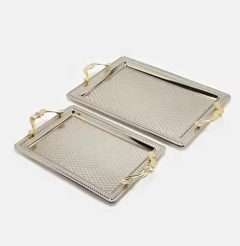 Plateau de service en métal pour chocolat, plat décoratif en acier inoxydable pour bonbons et fruits secs