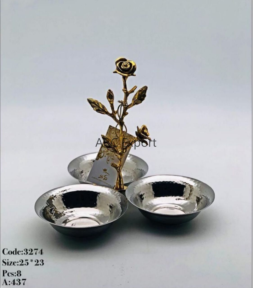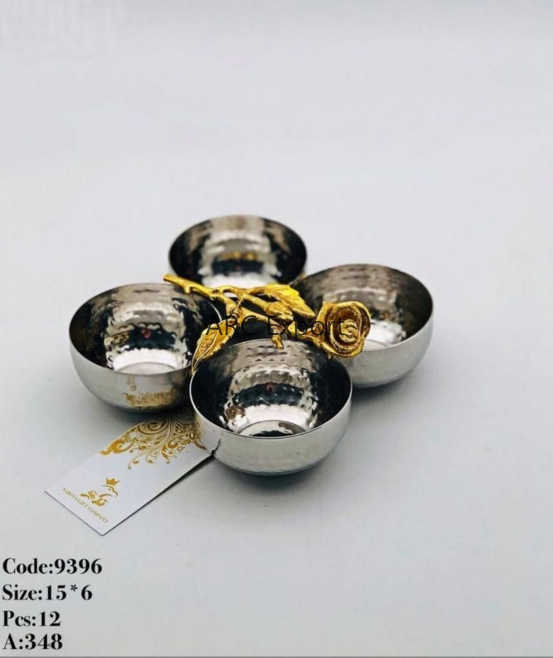Tableware Serving Ramdan Bowls Kitchenware Decorative Salad Bowls With Golden Color Plated Base And Hammererd Design Top
