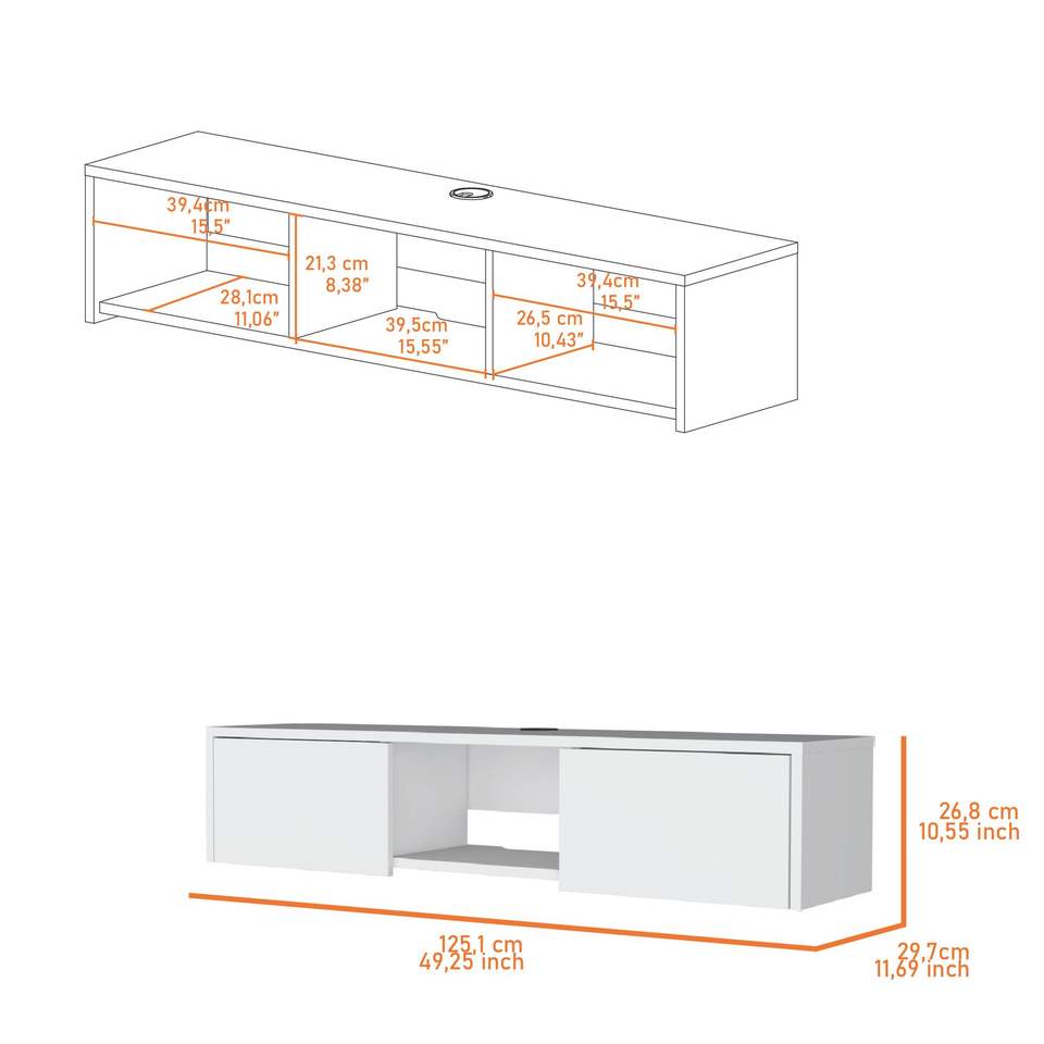 Tabor Meuble TV mural avec 2 portes et étagère ouverte Design flottant pour le divertissement à domicile