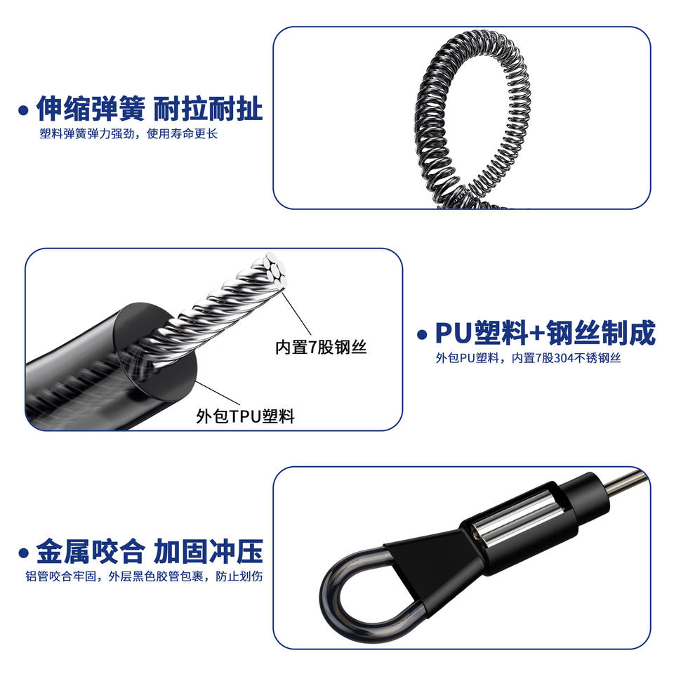 Lanières de sécurité rétractables flexibles en acier pour l'escalade en plein air, cordes élastiques anti-perte, cordes à ressort, cordes de pêche, mousqueton porte-clés
