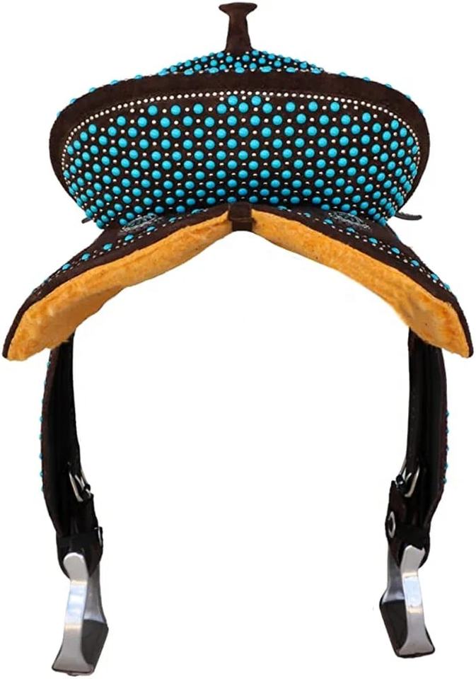 Selle Western Tackticle Turquoise ornée, selle de cowboy du Wild West, selle de plaisir pour sentier, siège en suède orné de bijoux, sports équestres