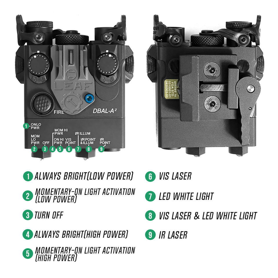 Lampe torche tactique DBAL A2 à lumière blanche, dispositif de visée laser rouge, en métal, compatible avec rail de 20 mm, accessoires de chasse