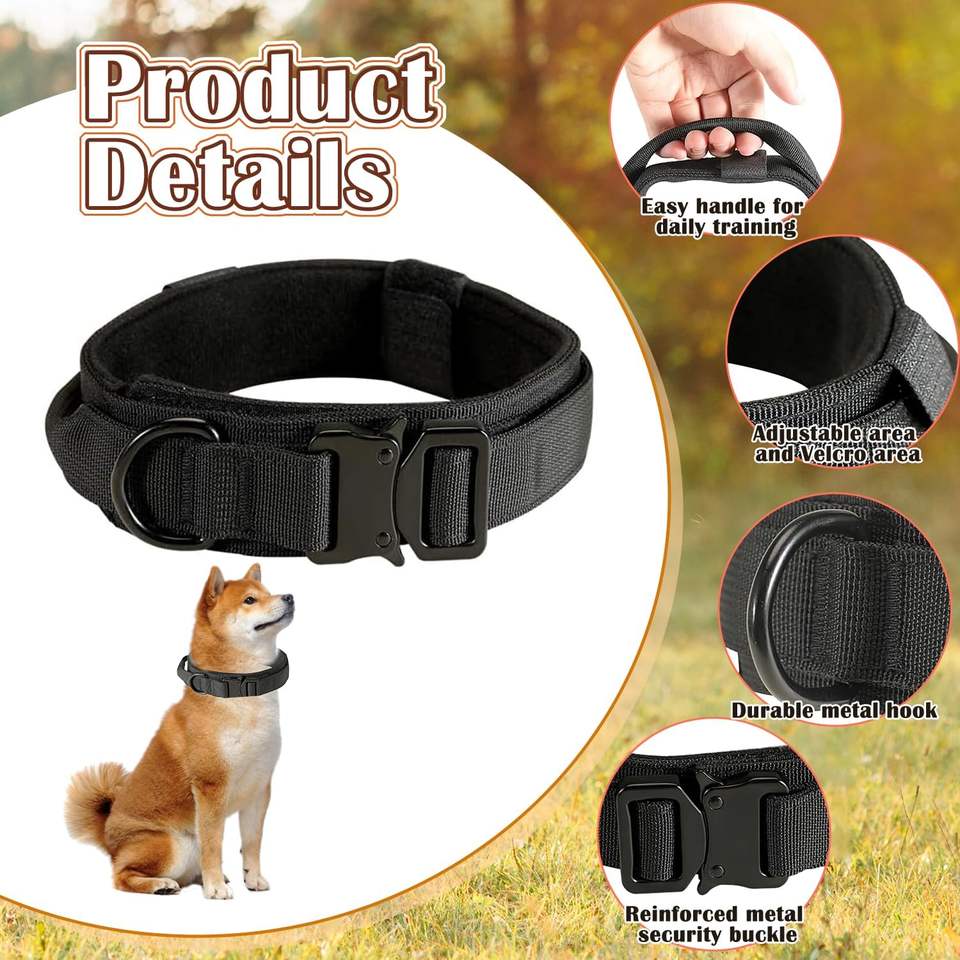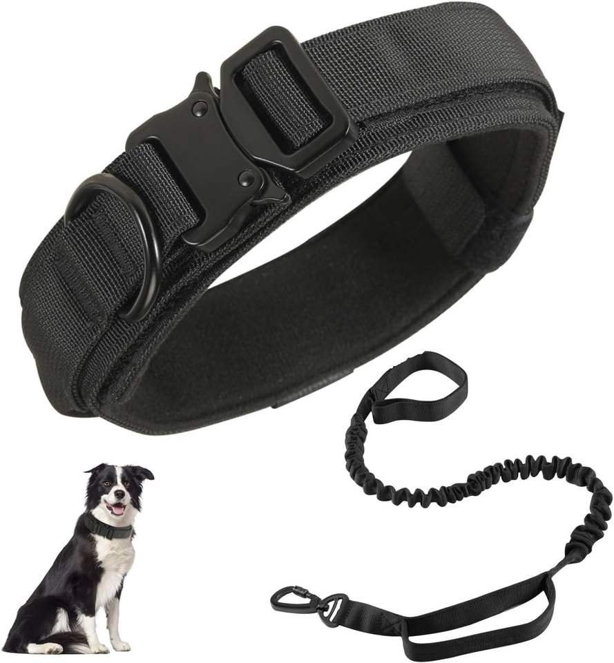 Laisse élastique en nylon réglable pour chien tactique avec poignée et boucle en métal lourd, ensemble de collier d'entraînement pour moyen