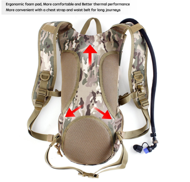 Sac d'hydratation tactique, sac à dos à eau 900D avec poche à eau de 2,5 L pour la randonnée, le vélo, la course à pied, la marche et l'escalade