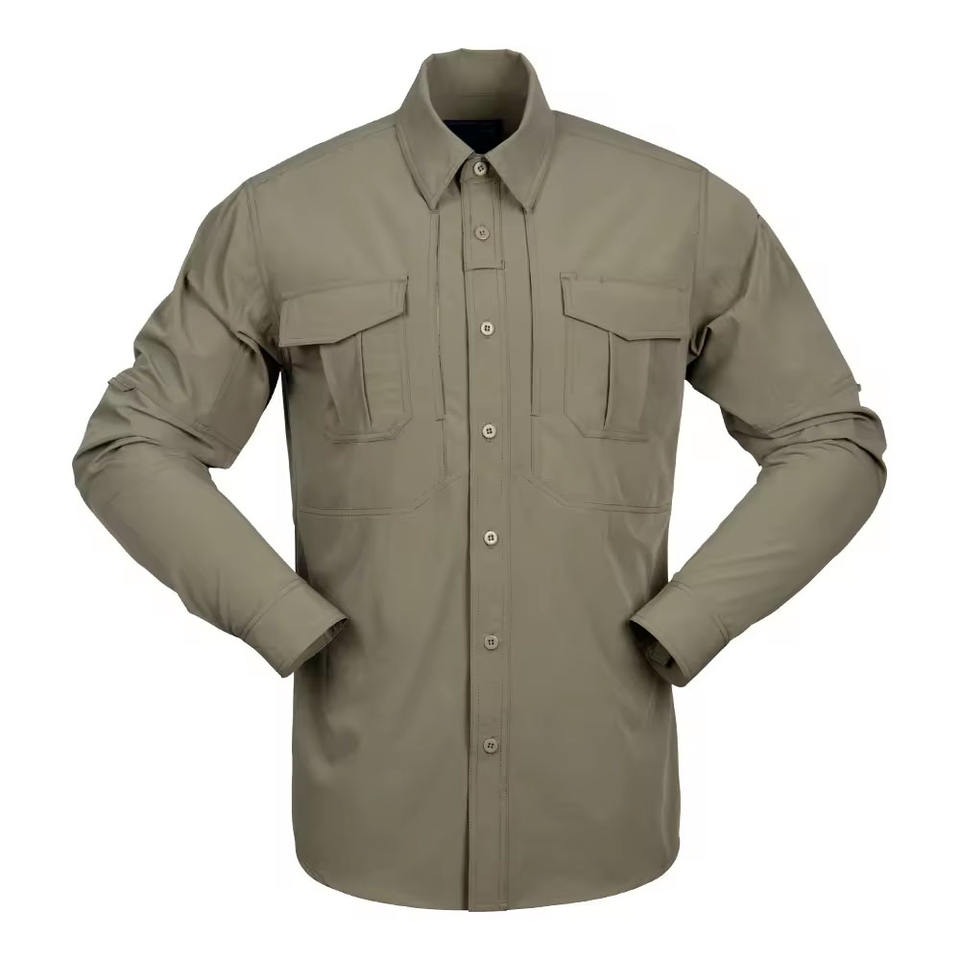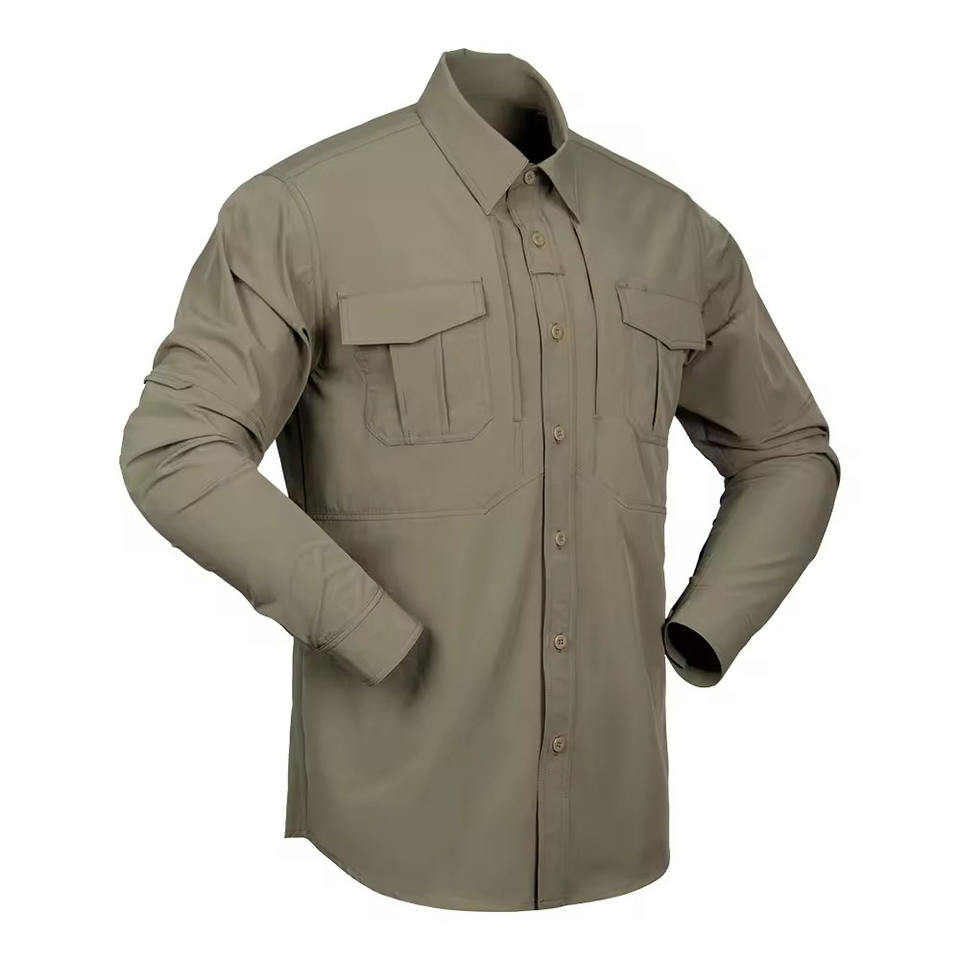 Chemises tactiques pour hommes, poches poitrine, manches longues, col en V, boutonnées, fines, respirantes, séchage rapide, 100% coton, chasse, coupe ample
