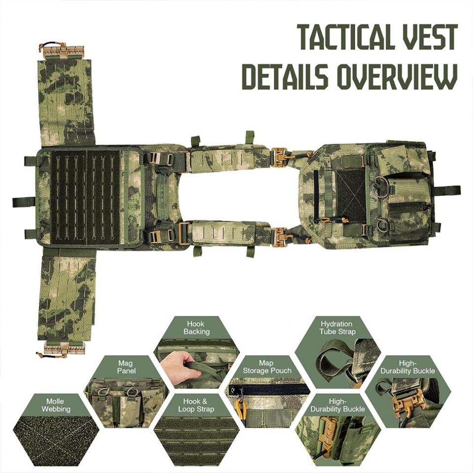 Gilet tactique d'extérieur léger modulaire 3D respirant réglable à libération rapide pour hommes en nylon