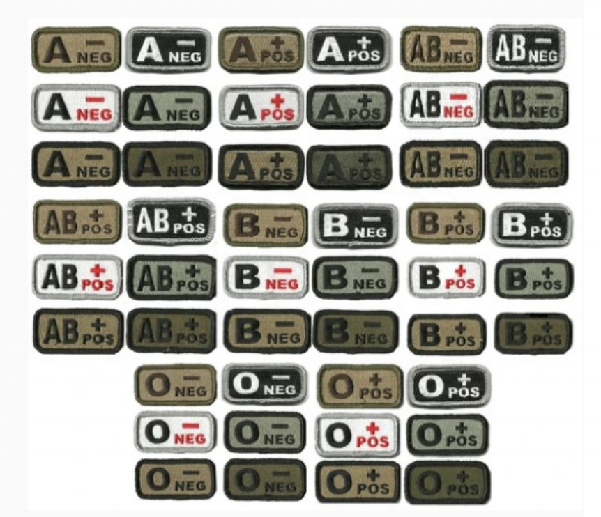 Patch Tactique Auto-Agrippant Groupe Sanguin A- A+ AB- AB+ B- B+ O- O+ Négatif Positif, Écusson Brodé