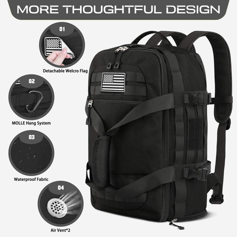 Sac à dos de voyage tactique avec compartiment à chaussures, sac de sport et sac de voyage 3 en 1, grande capacité, multifonctionnel, imperméable