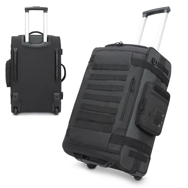 Valise Tactique à Roulettes avec Fermeture Éclair, Sac à Roulettes Externe, Sac de Voyage, Utilisation en Plein Air, Valise à Roulettes