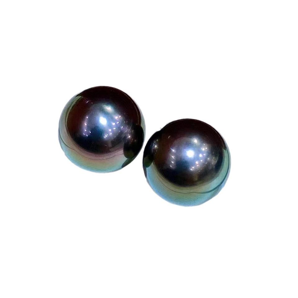 Tahiti Peacock Green Natural Pearl Earrings 9-10mm Oil Shining Flawless Versatile 925 Pure Silver Commuter