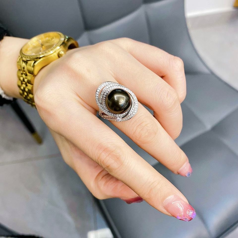 Tahitian Peacock Green & Black Pearl S925 Pure Silver Ring 12-11mm Smooth Delicate Skin Finish Paired with Gift Box