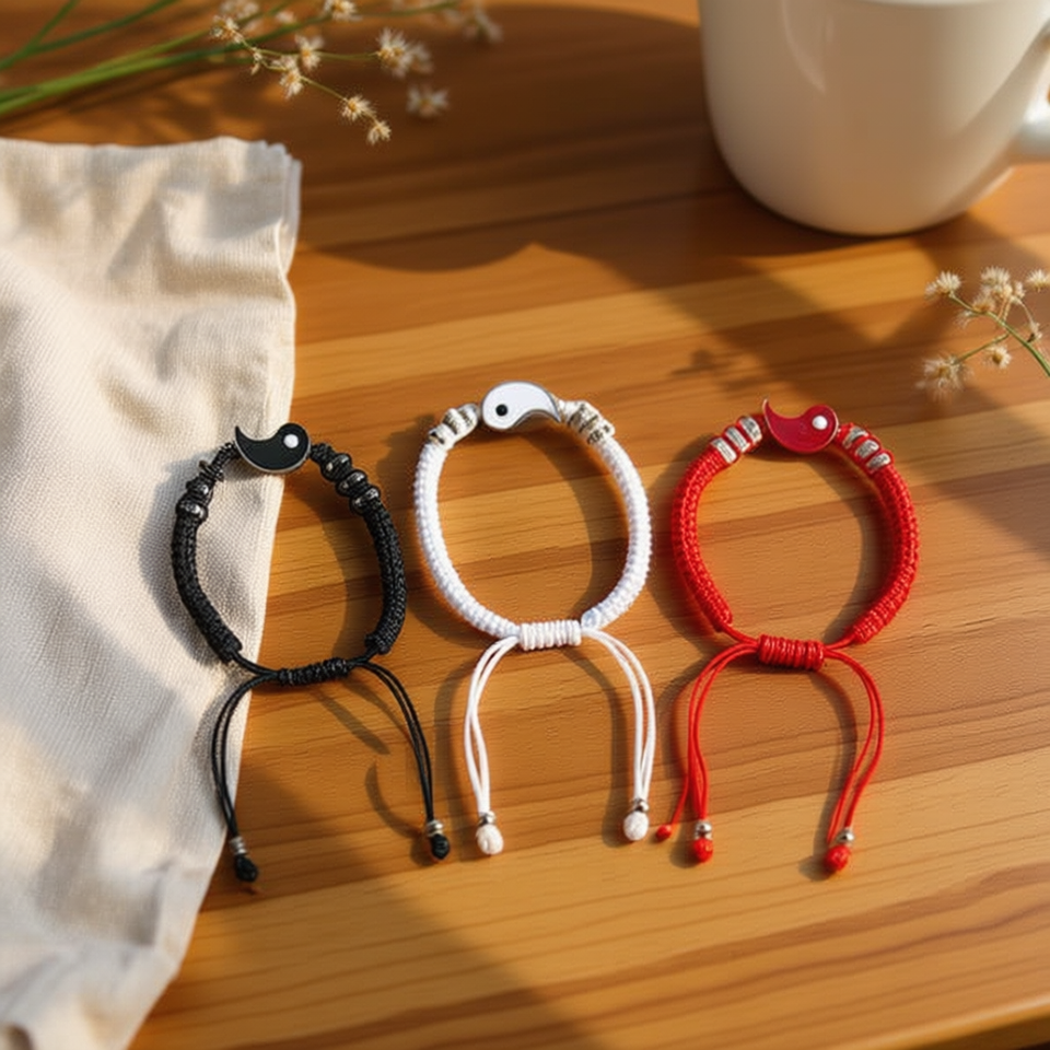 Bracelet en corde de chanvre en forme de lune Angelina Tai Chi, rouge, blanc, noir, unisexe, bracelet en corde tendance, cadeau, bijoux