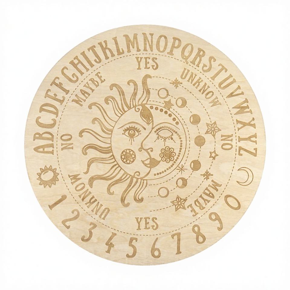 Tailai Pendule et Tableau des Esprits en Bois Gravé Personnalisable de 6-8 Pouces – Outil de Divination Personnalisé pour des Réponses Claires – Sorcellerie